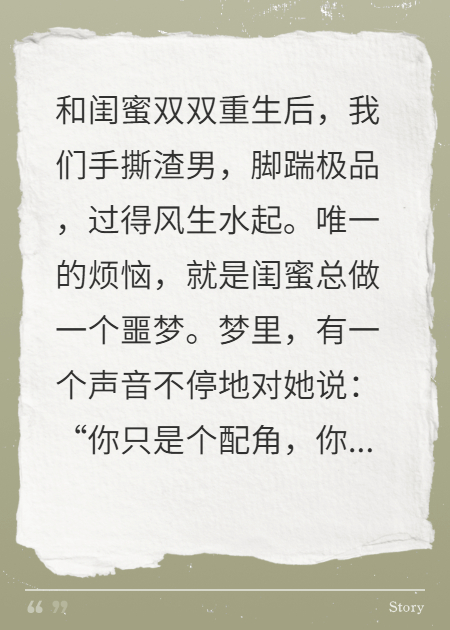 主角分别是【秦屿林朝汐】的年代小说《撕烂狗血剧本,与闺蜜联手改命!》,由知名作家“爱吃私房炒饭”倾力创作,讲述了一段扣人心弦的故事。本站TXT全本,期待您的阅读!本书共计7136字,1章节,更新日期为2025-11-14。该作品目前在本网 【fengtlc.com】上完结。小说详情介绍:撕烂狗血剧本,与闺蜜联手改命!