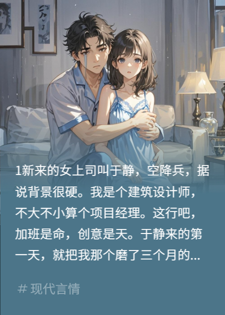 男女主角分别是【周倩于静张伟】的现代言情小说《赴约女上司却撞见我高冷老婆》,由网络作家“俺就是土狗”倾情创作,描绘了一段动人心弦的爱情故事,本站无广告干扰,精彩内容欢迎阅读!本书共计7273字,1章节,更新日期为2025-11-14。该作品目前在本网 【fengtlc.com】上完结。小说详情介绍:赴约女上司却撞见我高冷老婆